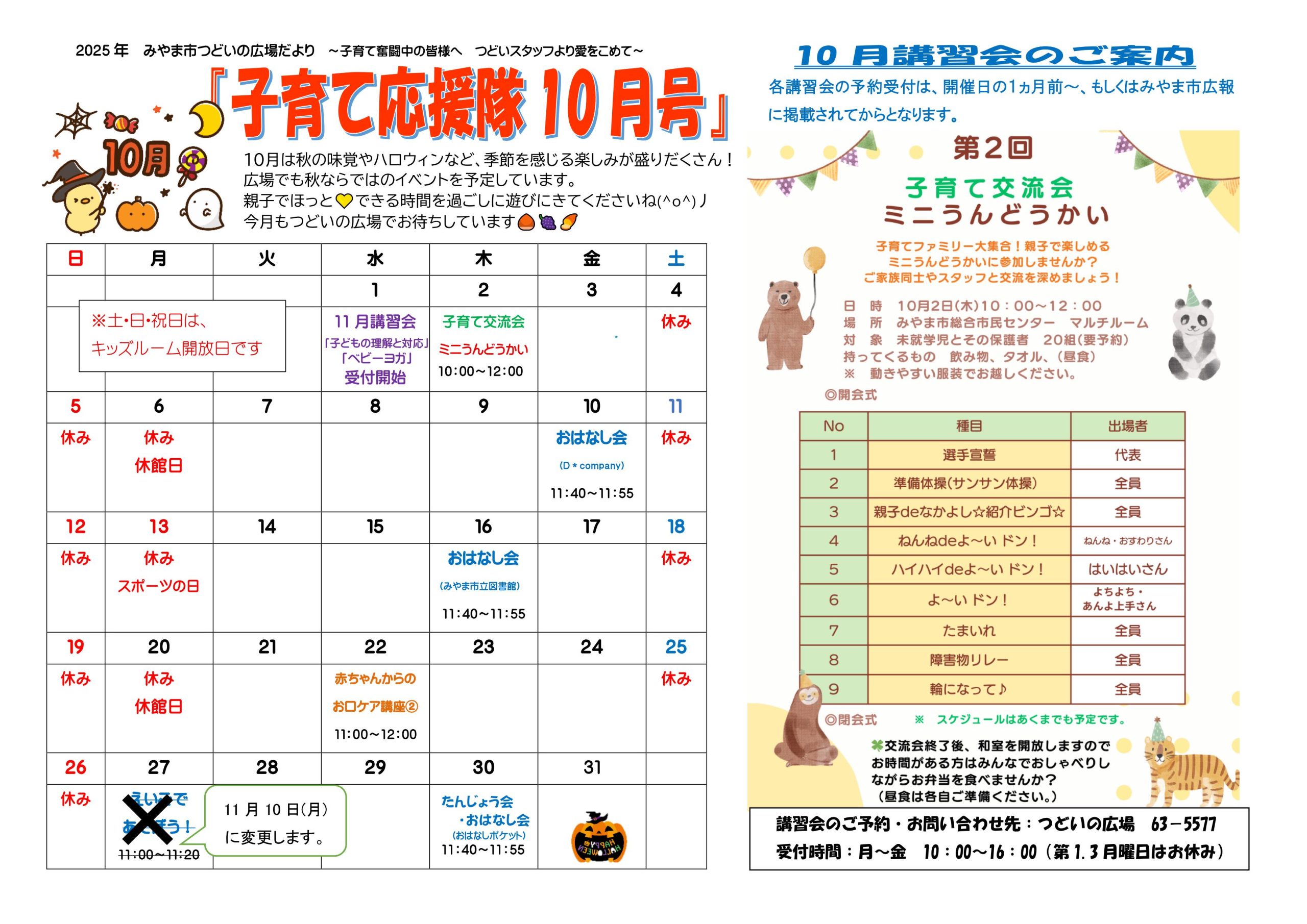 10月のイベントのお知らせ 2025年7月17日 お知らせ 介護予防を目的とした教室です。 対象は、おおむね65歳以上の人です。 ★がついている教室のみ、申込みが必要です。 お気軽にご参加ください。 10月生きがい教室 カレンダー 続きを読む..